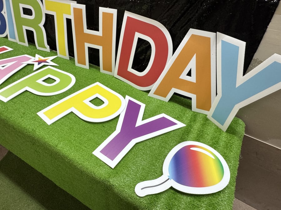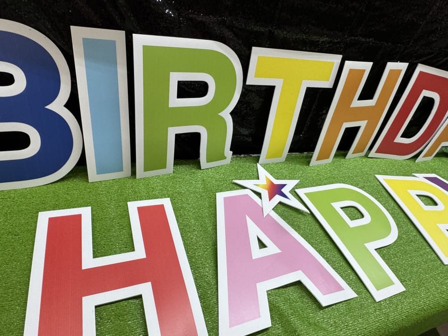 Make birthdays unforgettable with our Rainbow, happy birthday sign. This vibrant, eye-catching yard sign rents for $99 per day with a $29.99 setup fee. Rent one as a standalone surprise or pair it with other yard flare for bigger impact. Quick to order. Fast to set up. Memorable for the whole neighborhood. 💫